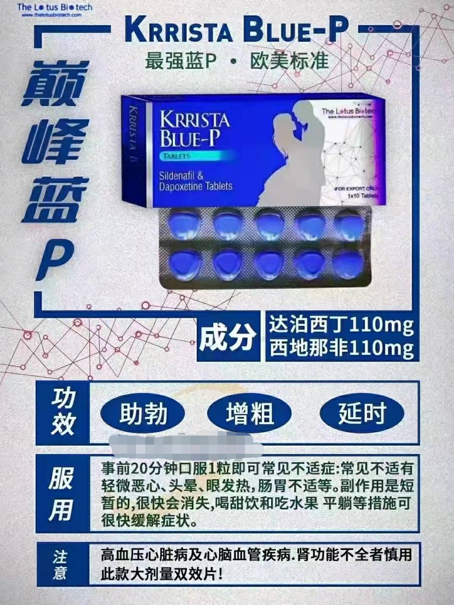★最强蓝p ★欧美标准 巅峰超级万艾可双效片(凯瑞蓝P)双效片 Krrista Blue P