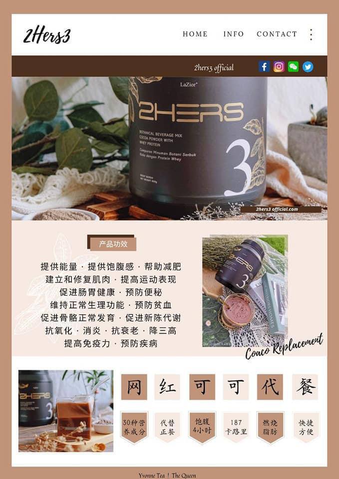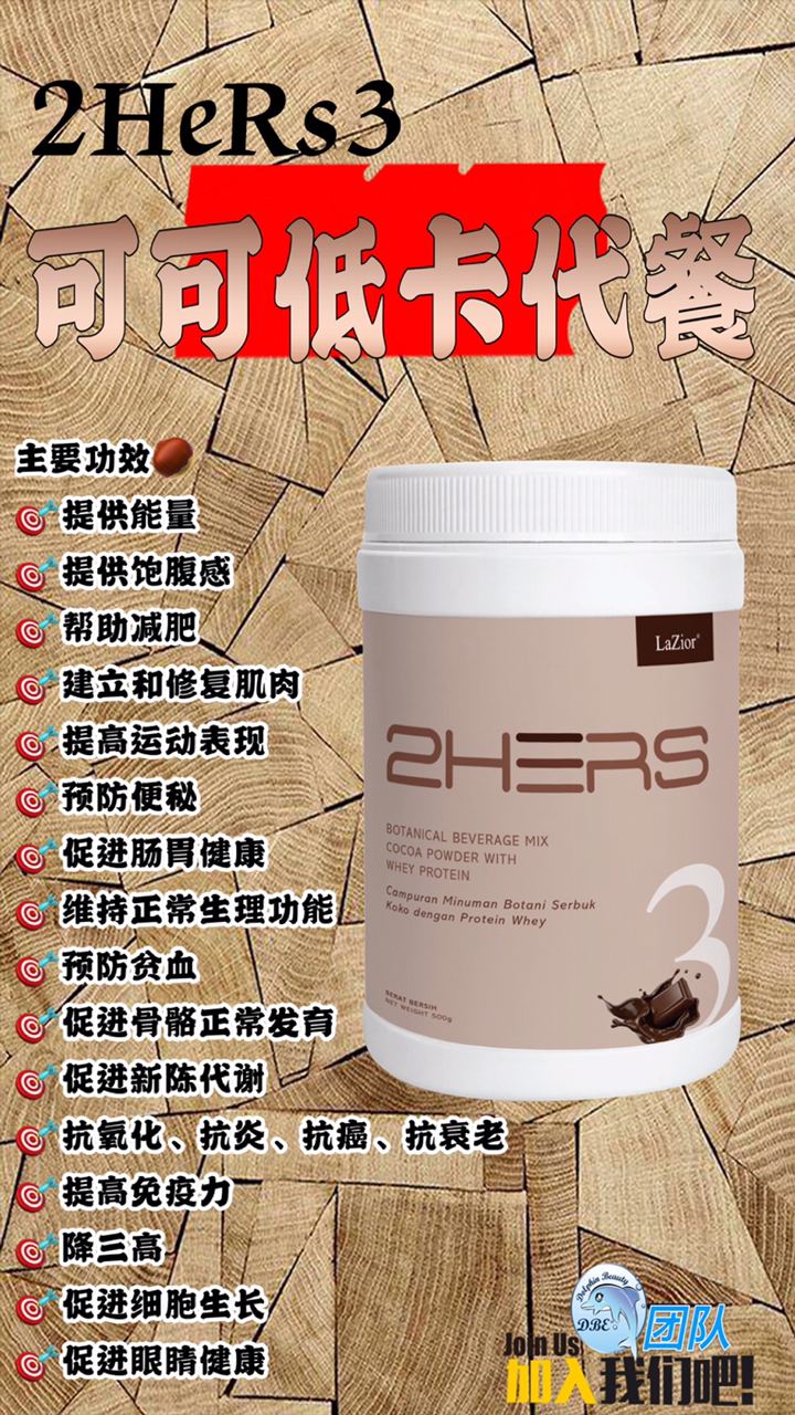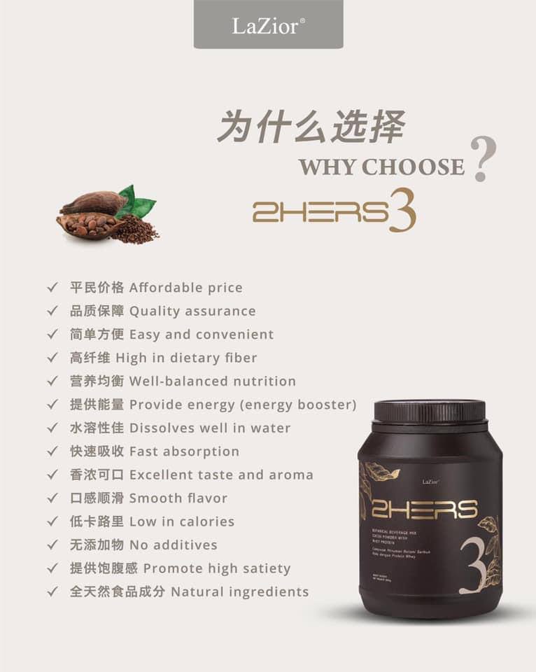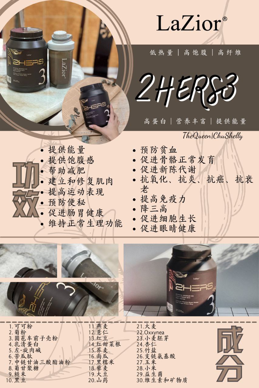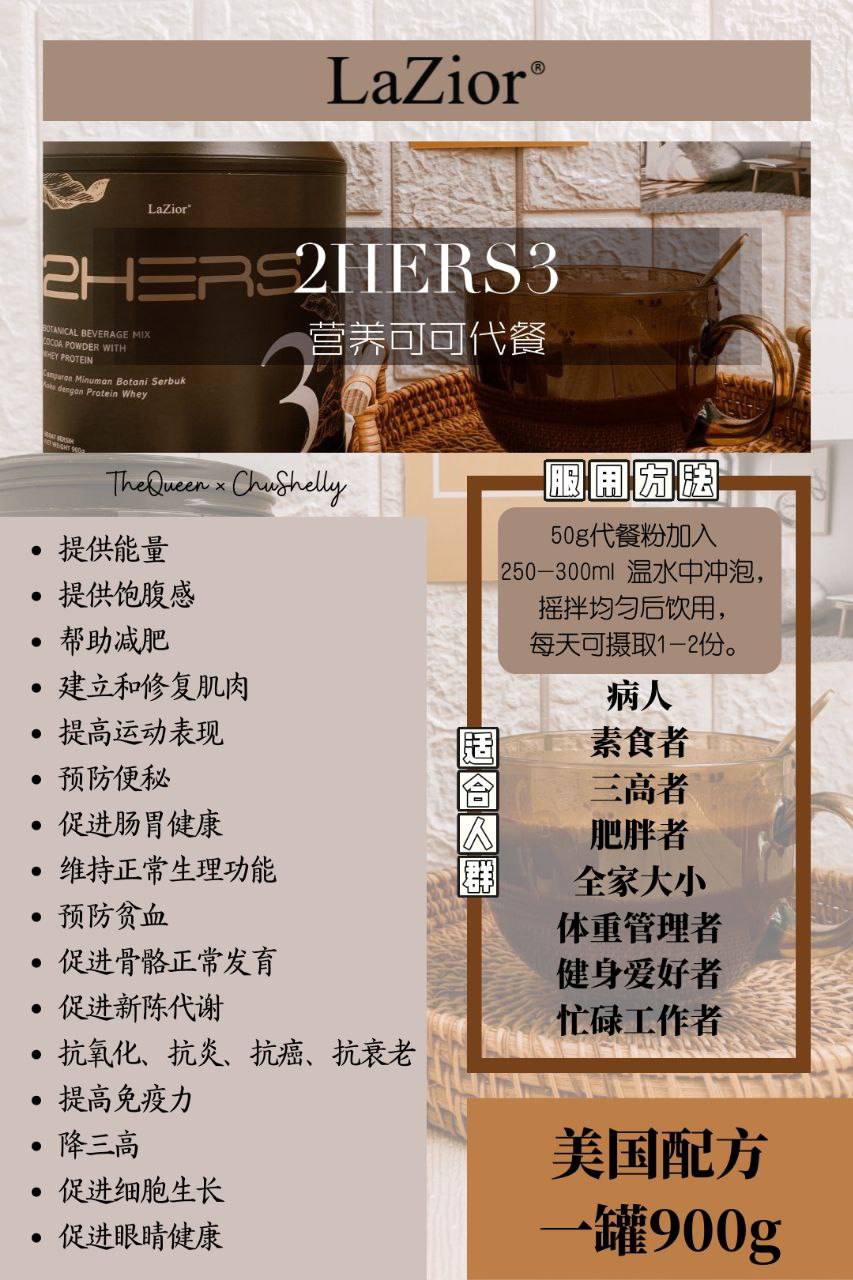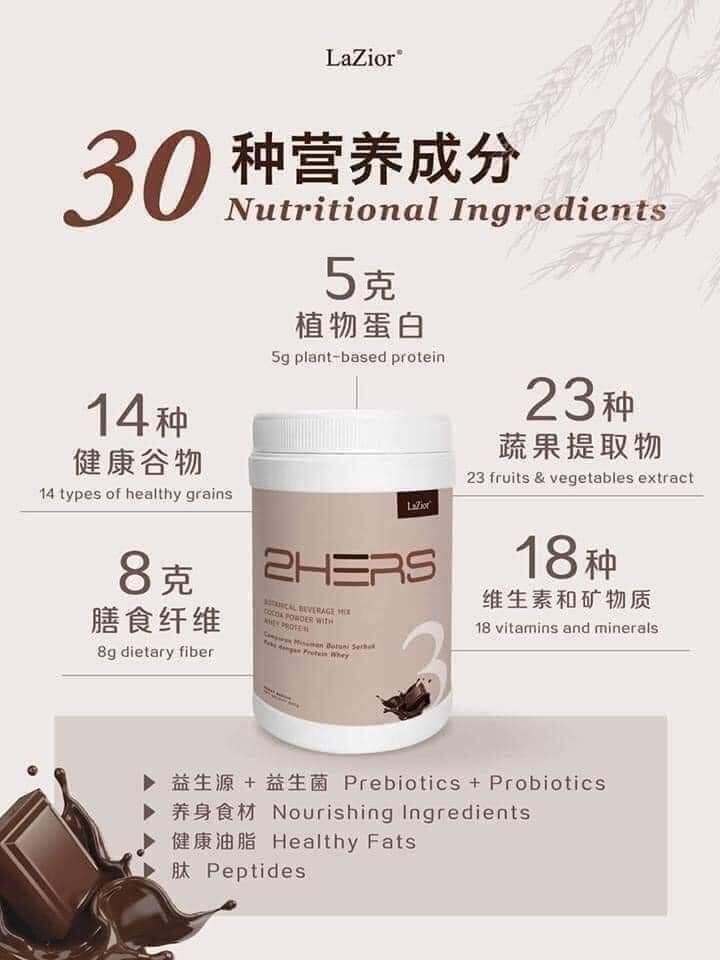 2HERS3 by Lazior 可可低卡营养代餐 2.0升级版 (900g/Tin)