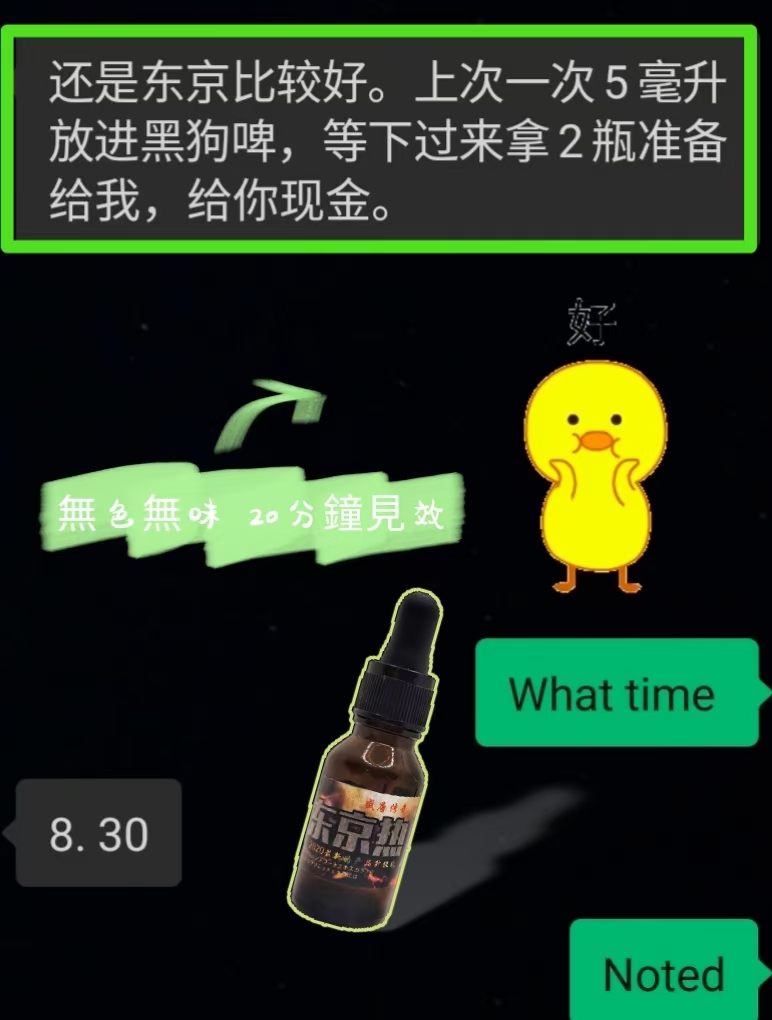迷情藥,催情藥雙效果,每次用三分之一,加在低于300ml的酒水或飲料裏。