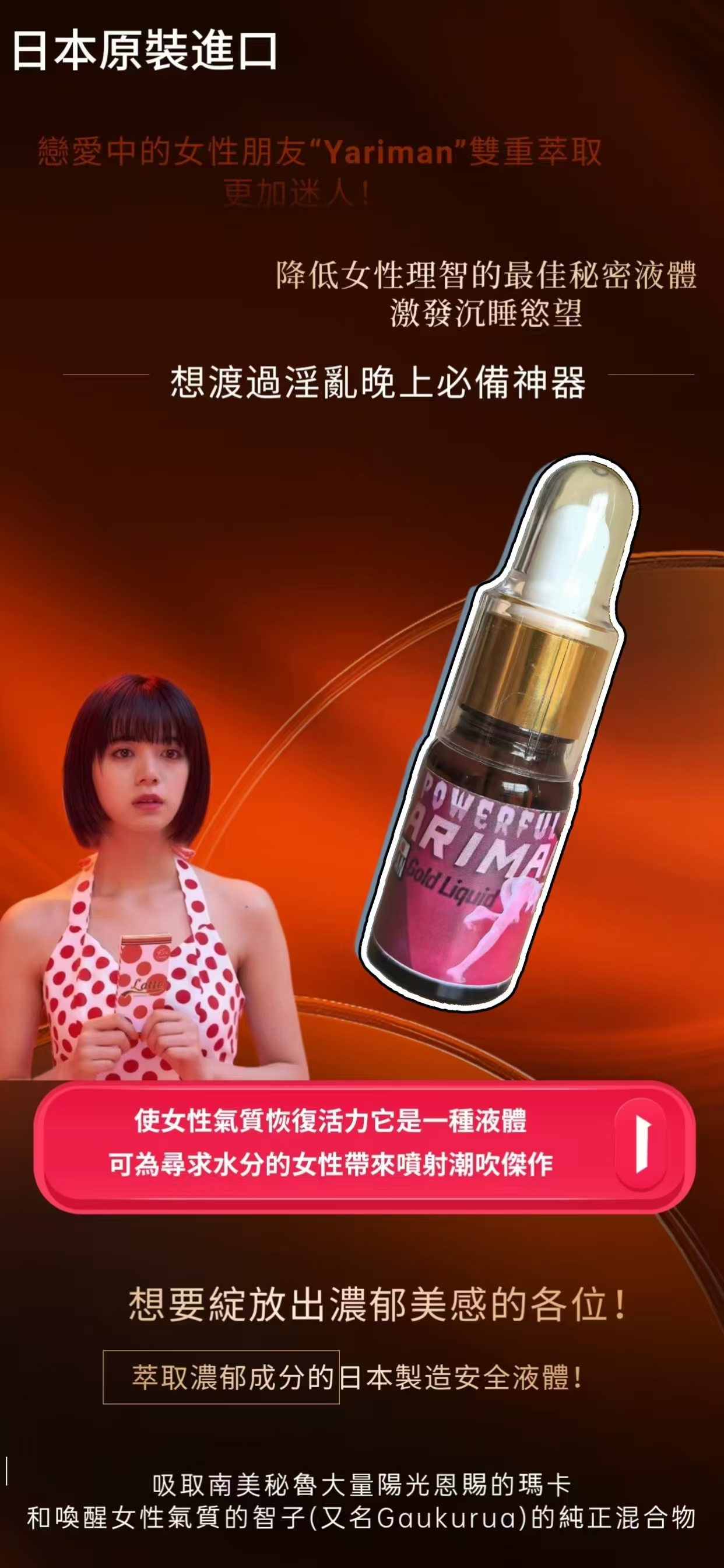 注意:本產品由原裝進口,純為增進情趣之食品,。