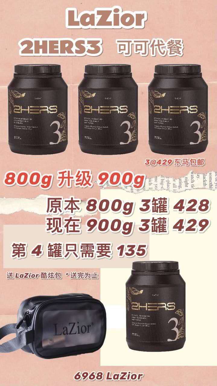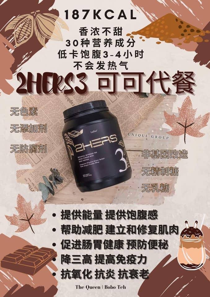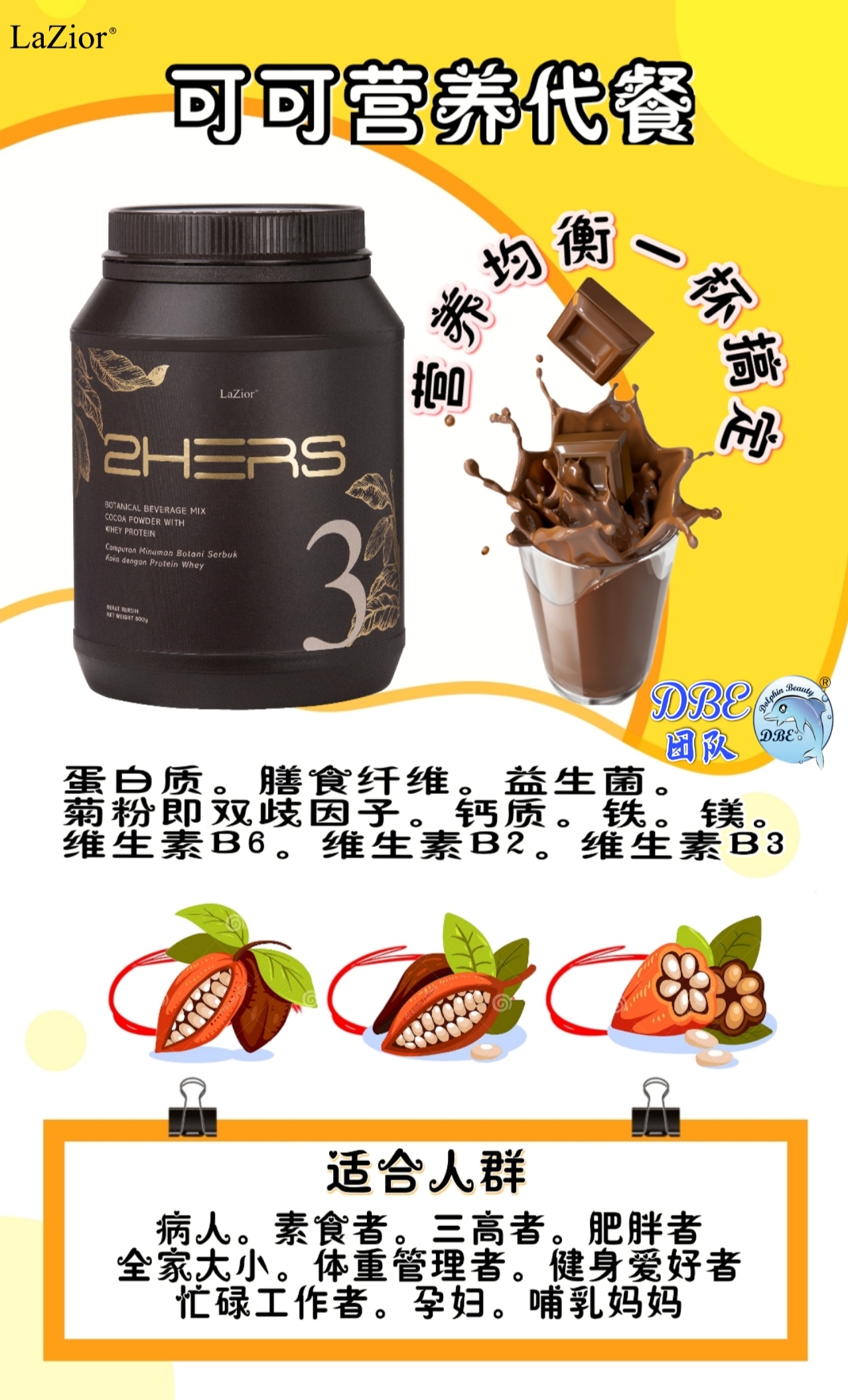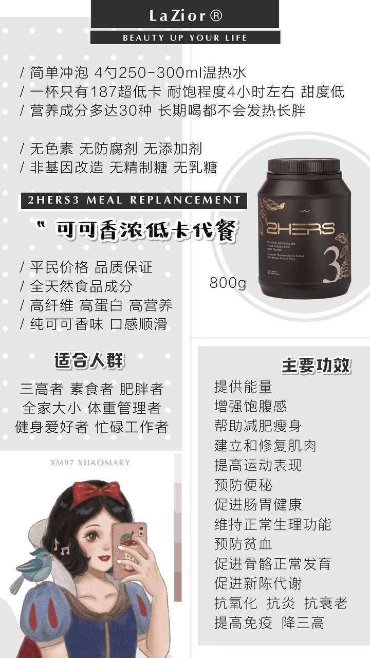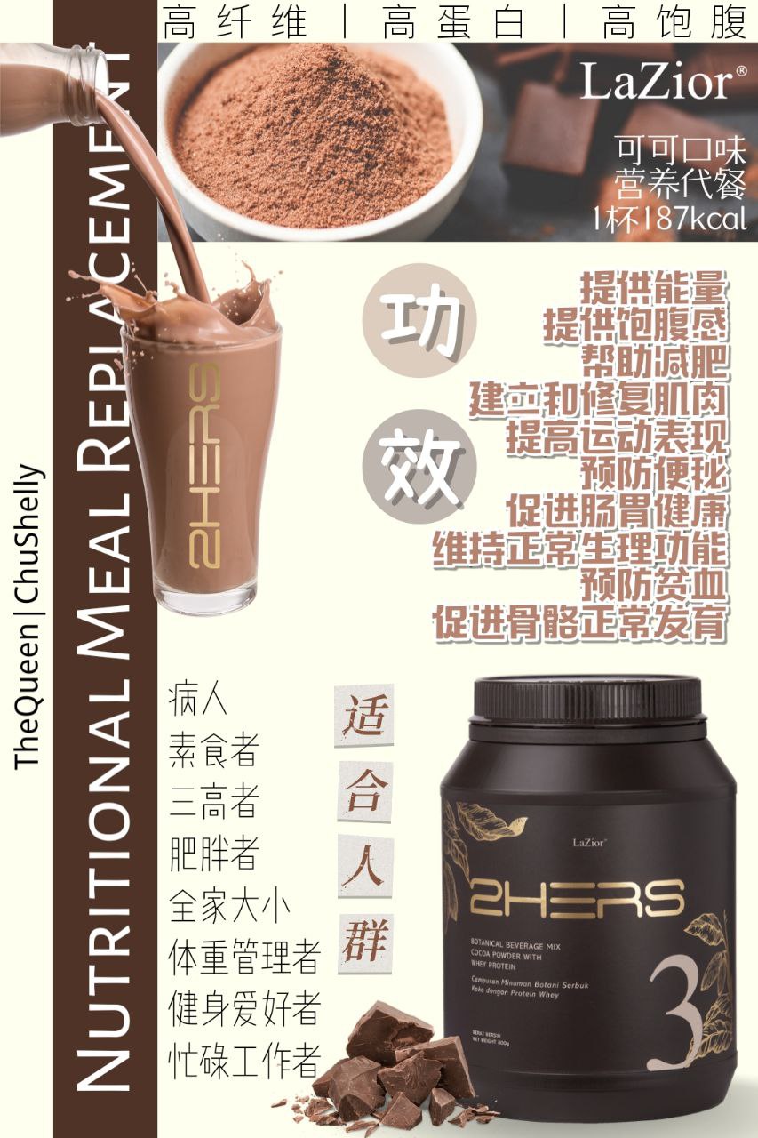 2HERS3 by Lazior 可可低卡营养代餐 2.0升级版 (900g/Tin)